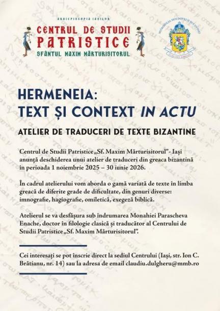 Atelier de traduceri din greacă bizantină, la Centrul „Sfântul Maxim Mărturisitorul” din Iași